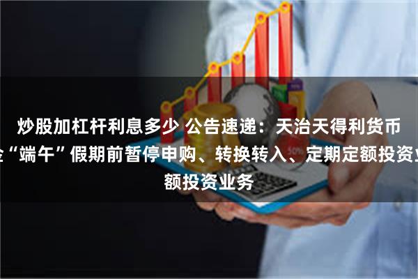 炒股加杠杆利息多少 公告速递:天治天得利货币基金“端午”假期前暂停申购、转换转入、定期定额投资业务